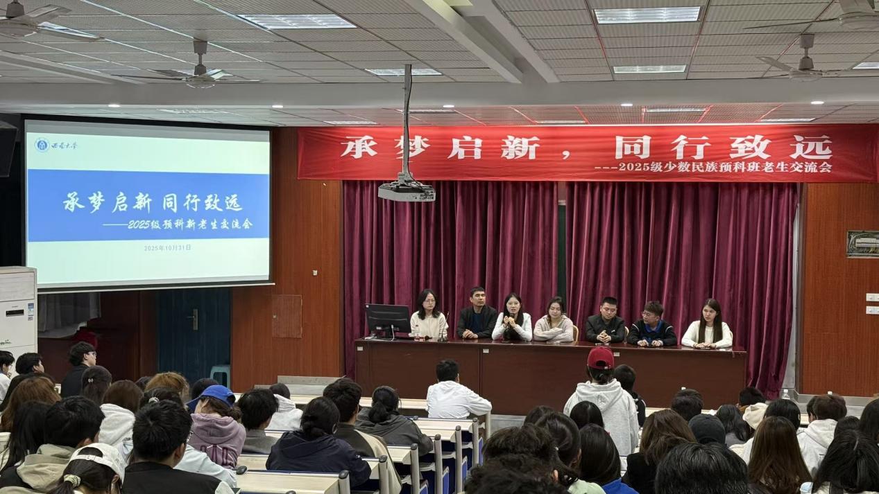 10月31日晚,九教505教室灯火通明,情意融融。公司举办“承梦启新,同行致远”2025级少数民族预科新老生交流会。