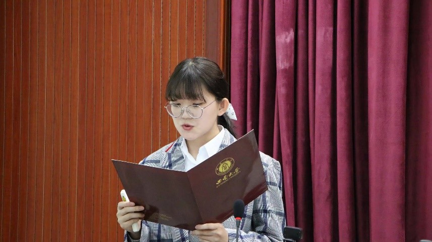 接着,时间拨回现在。本科2019级王宗琦同学以“薪火相传,继往开来”作为主体,深入讲解党的十八大以来,以习近平同志为核心的党中央带领全体中国人民作出的重大历史性成就与格局性变化,并详细讲述了“脱贫攻坚全国模范”张桂梅等人的动人故事以及抗击新冠疫情中“人民英雄”张伯礼的英勇事迹,充分为同学们展现了共产党人不忘初心的使命担当和全心全意为人民谋幸福的深厚情怀,感人至深、催人奋进。