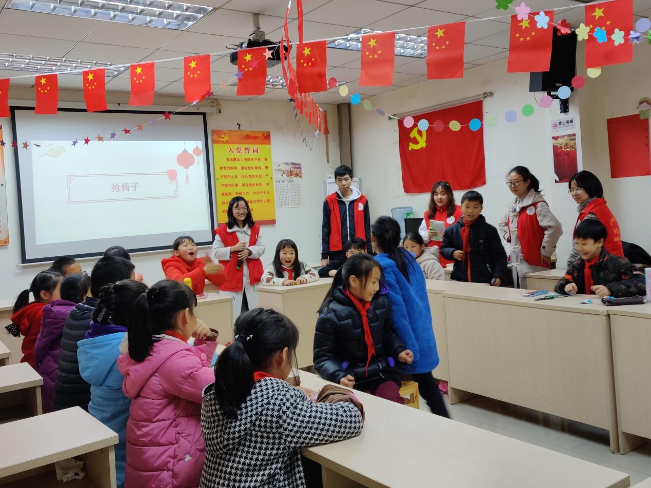 此后便是小朋友们期待已久的游戏环节,志愿者们组织小朋友进行击鼓传花、抢椅子等娱乐游戏,在欢声笑语中交流互动,小朋友们也得到了志愿者精心准备的文具糖果作为礼品。