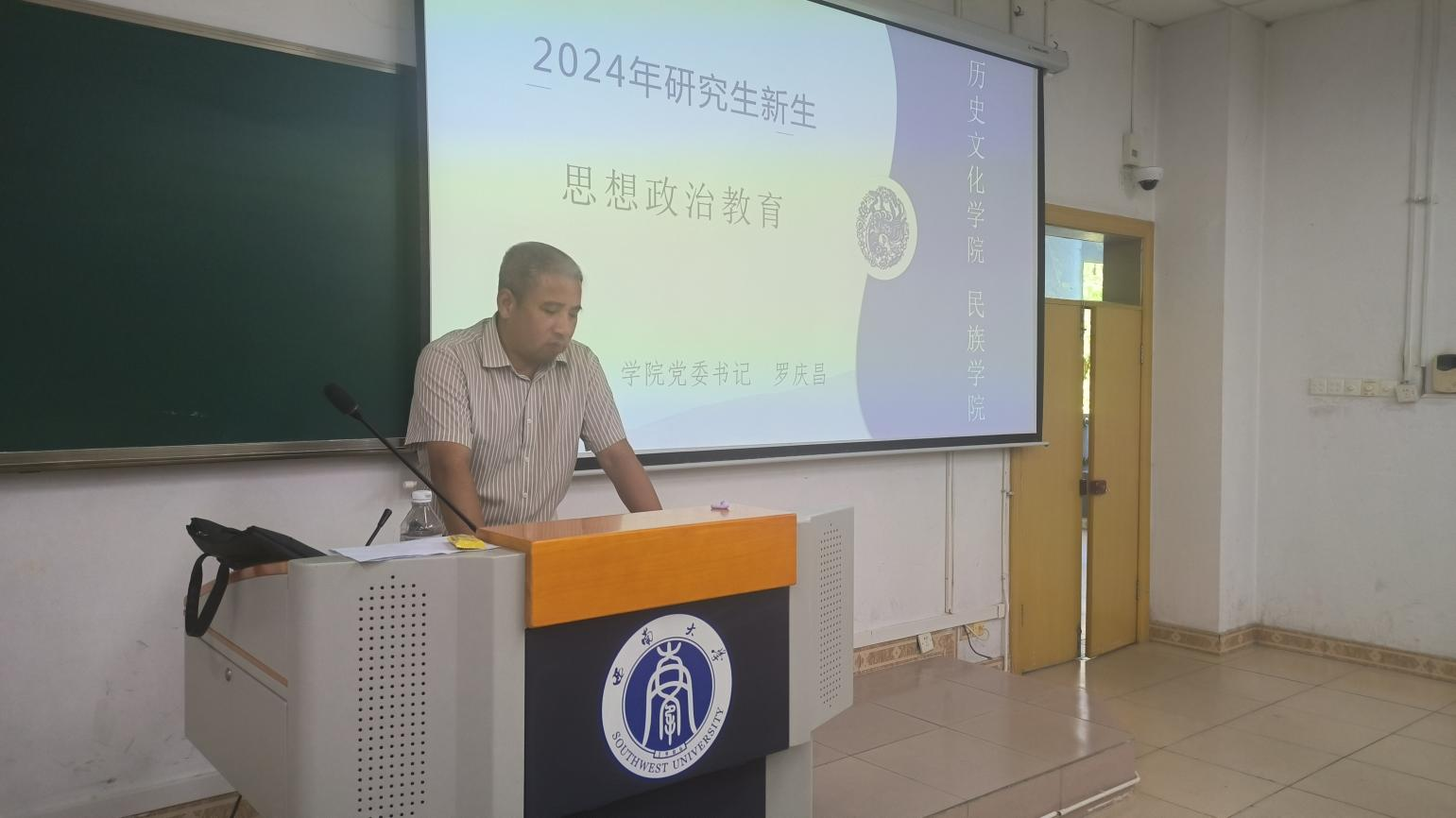 公司党委书记罗庆昌为研究生新生做思想政治教育