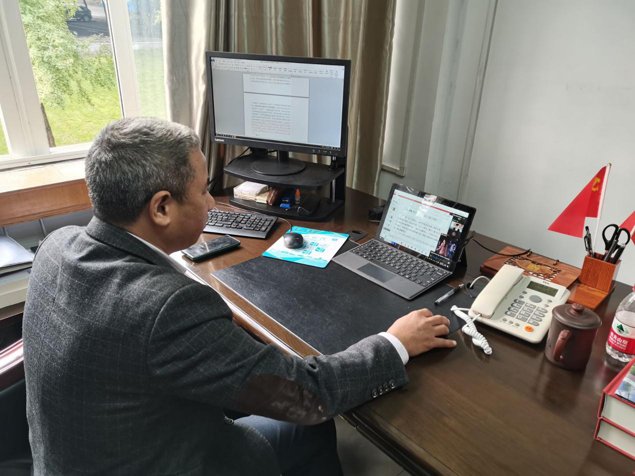 罗庆昌书记坚守在校内工作岗位上,带领督导组开展线上教学督导