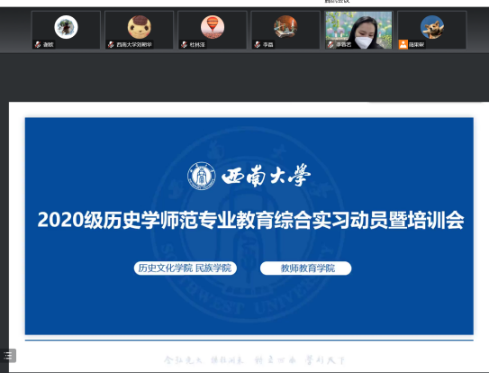 2023年1月4日下午,公司线上召开了2020级历史学(师范)专业教育综合实习动员暨培训大会。公司党委副书记张静、公司副经理李晶、教师教育公司及公司指导教师曹华清、袁从秀、谢欧、范敏、杜林泽以及公司2020级全体师范生参加本次大会。大会由2020级本科生辅导员李蓉若主持。为更好开展本次实习培训,公司教师教育公司特别邀请重庆市兼善中学副董事长冉崇娟、BB贝博艾弗森附属中公司教师赵敏岩为公司2020级师范生开展教育实习专项培训。
