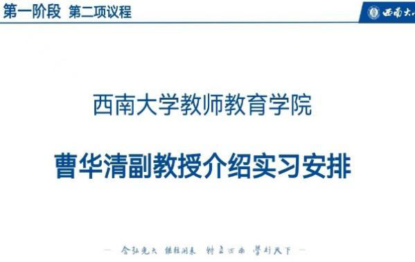 曹华清副教授向同学们介绍了本次实习的各位指导老师,通过介绍梳理教育实习各环节的注意事项,帮助全体同学明确实习过程中的具体要求、考核标准等内容。她还号召同学们积极参与实习公司的公司产品实践活动、树立正确的学习工作态度、始终体现教师的理想和情怀。