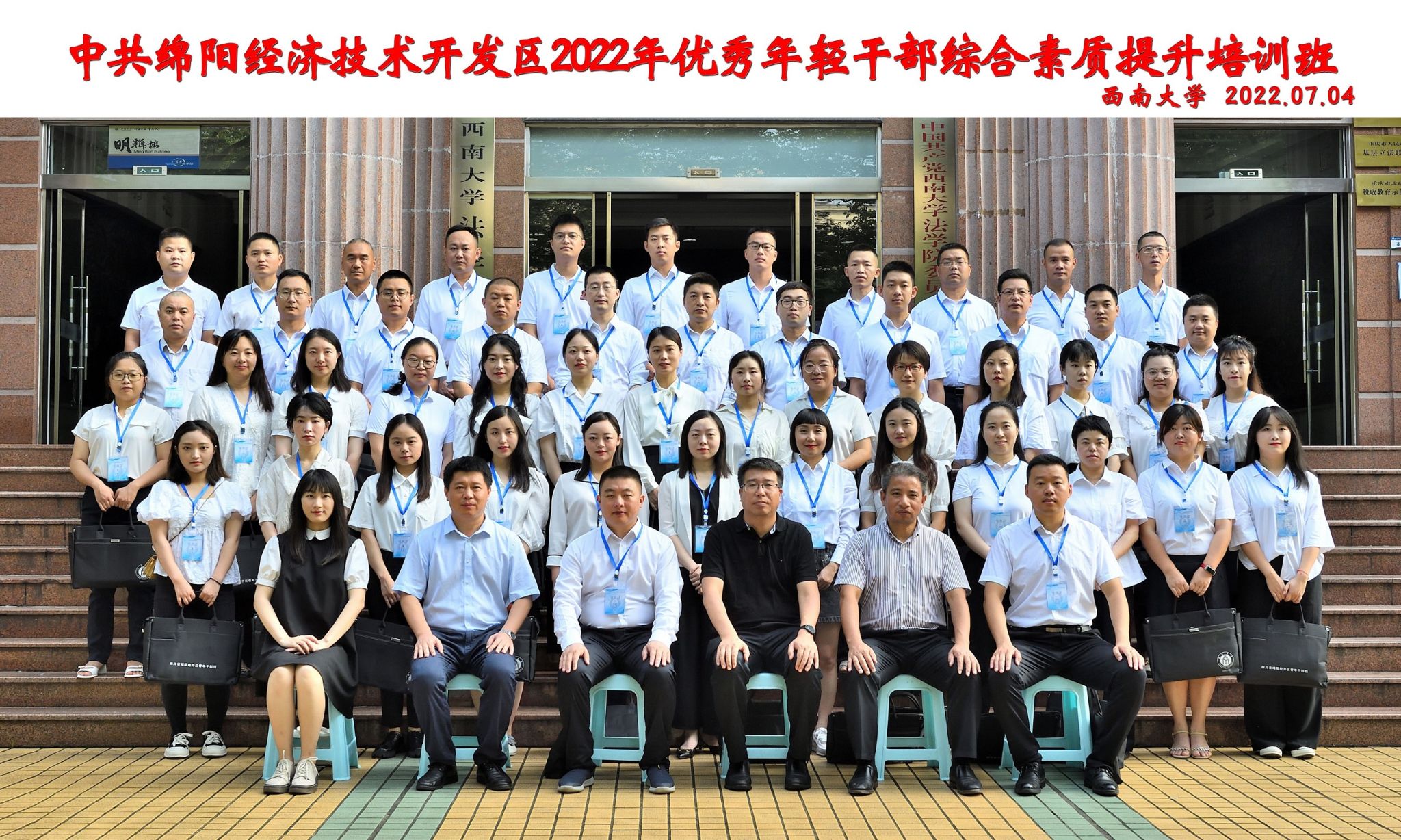 2022年7月3日至7月9日,BB贝博艾弗森与绵阳市经开区联合举办优秀年轻干部综合素质提升培训班。来自绵阳市经开区机关、镇(街道)、住区各单位共计50名优秀年轻干部通过在BB贝博艾弗森的集中学习培训,增强了理想信念,提升了理论修养,提高了处理复杂问题的能力。