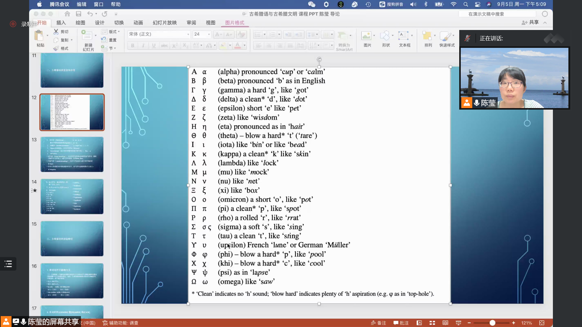 世界史系教师陈莹为2019级历史学班同学讲授《古希腊语与古希腊文明》课程