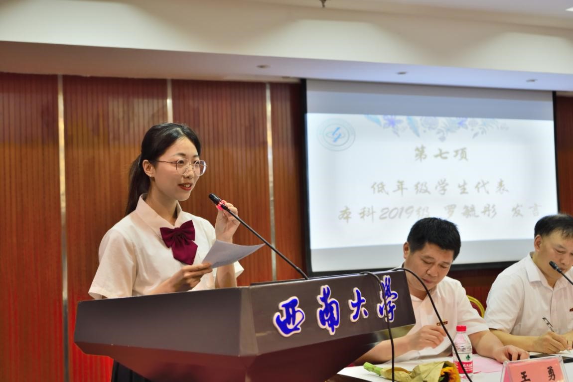 低年级员工代表、本科2019级罗毓彤同学为全体毕业生学长学姐送出了真挚祝福。她代表公司全体低年级同学表态,将弘扬2022届毕业生的优良传统,不断锤炼自身本领,继续为公司和公司争光。