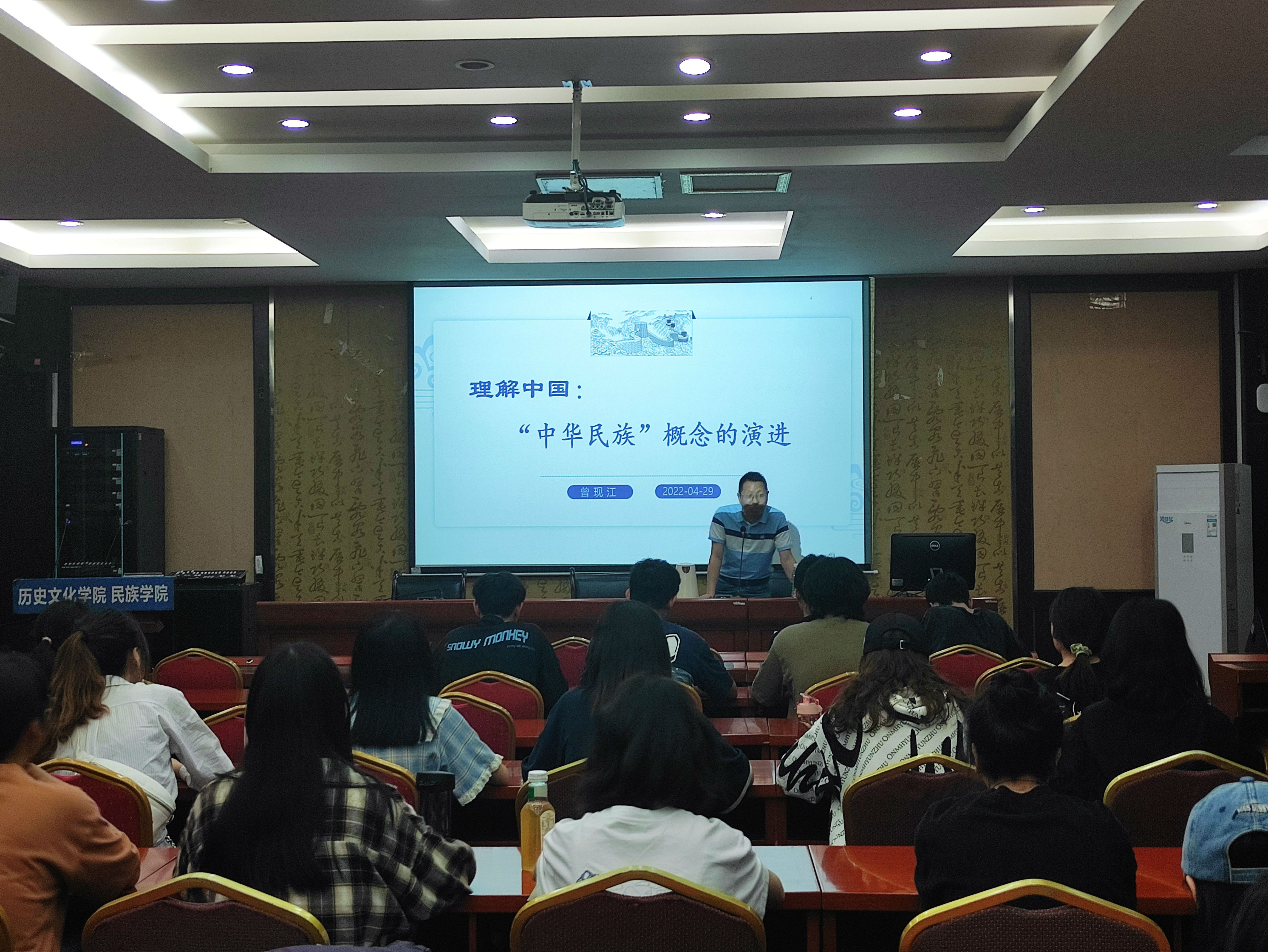 2022年4月29日晚七点,BB贝博艾弗森第二场历史学类专业分流讲座在荟文楼七楼报告厅举行。本次讲座由曾现江教授主讲,题目为“理解中国:‘中华民族’概念的演进”,公司2020级历史学类班同学积极参与。