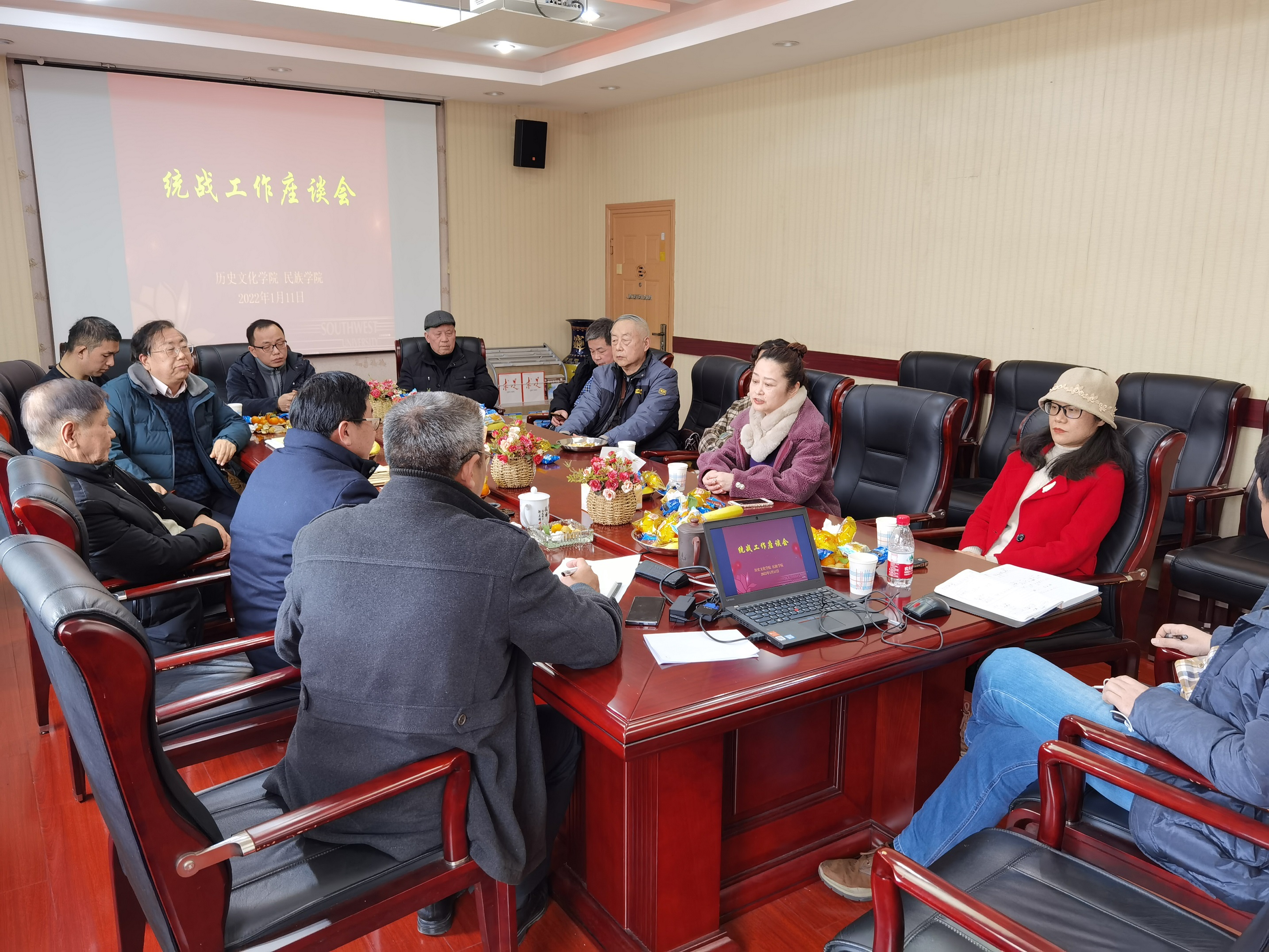 2022年1月11日上午,公司在520会议室召开统战工作座谈会。公司领导班子、离退休和在职的各民主党派成员参加会议。会议由公司党委书记罗庆昌主持。