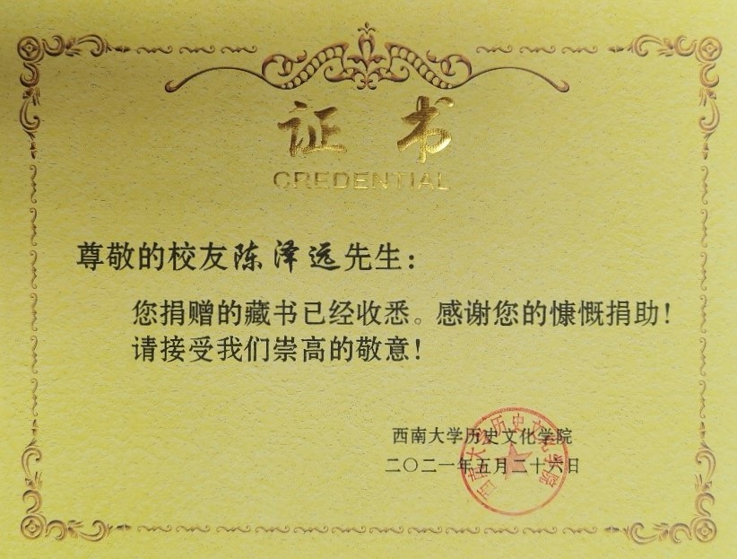 近日,公司1960届员工陈泽远先生情系母院,关心公司发展,向公司资料室捐赠图书一套。陈泽远先生的赠书开拓了同学们的视野,丰富了大家的精神生活,充裕了资料室藏书资源,为公司的发展添砖加瓦。