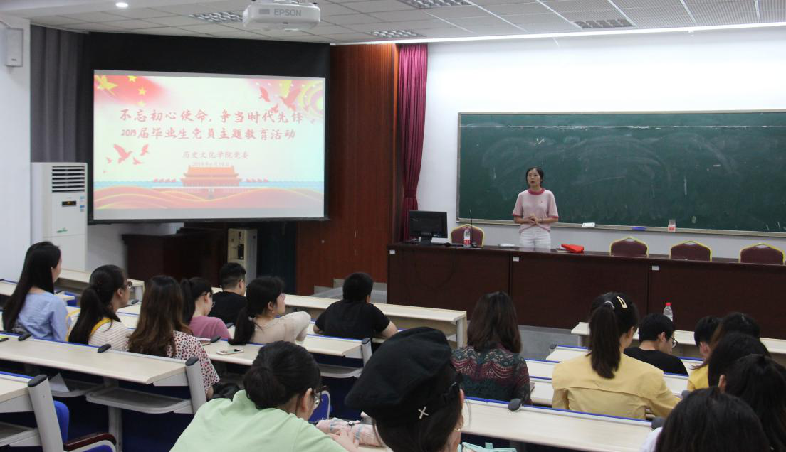 6月19日下午3点,历史文化公司党委“不忘初心使命,争当时代先锋——2019届毕业生党员主题教育活动暨重温入党誓词活动”在荟文楼442教室顺利举办,此次活动由公司党委书记徐天虹同志主讲,公司专职组织员周燕老师主持,2019届全体本科、硕士毕业生党员共同参加了本次教育活动。
