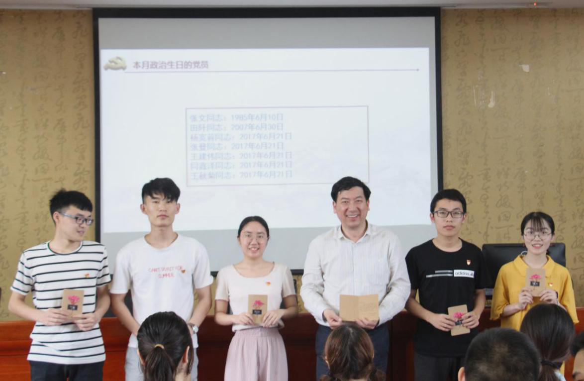 本次主题活动的亮点之一是师生共过“政治生日”。“政治生日”意味着党员政治生命的开启,既包括党龄一年的新同志,也包括党龄几十年的老同志,通过简单的仪式让心怀同一信仰的党员同志不忘初心,牢记使命。在建党98周年之际,毕业生党员与教师党员同过“政治生日”,党组织给各位党员送上专属的政治生日贺卡,既对毕业生党员进行了毕业教育,又增强了党员的归属感和幸福感。师生党员依次发表了自己的“政治生日”感想,教工二支部田阡同志表示,此次的政治生日使自己重回了员工时代,回忆起了从公司毕业前夕加入中国共产党的岁月,感谢了组织的培养,尤其是分享了党员身份与学术研究之间的经验。杨宽蓉、张登等五位同志也依次进行了发言,深深的感谢党组织的教育和培养。室内主题活动在全体师生党员重温入党誓词的中结束。