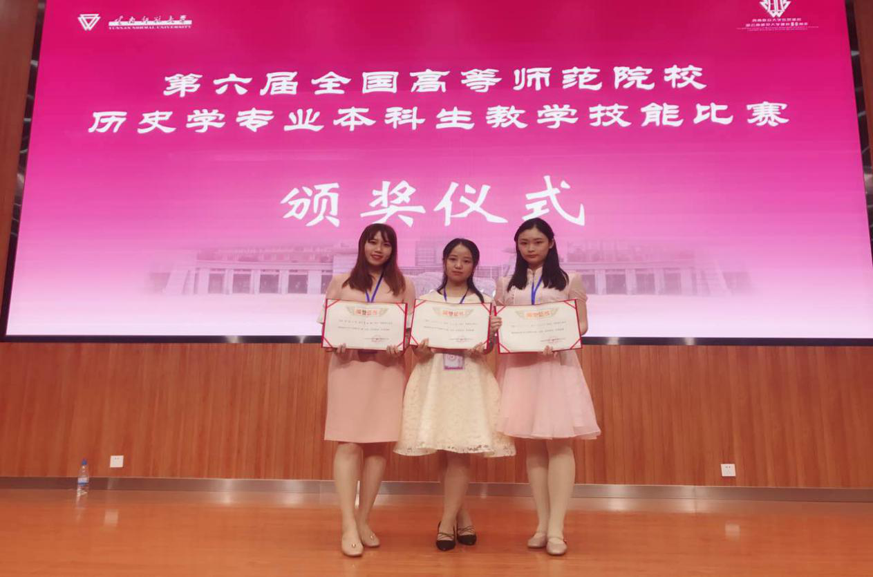 2018年5月16—19日,由教育部基础教育司支持、中国高等教育学会教师教育分会全国历史教师教育专委会主办的“第六届全国高等公司历史教育专业本科生教学技能比赛”在云南师范大学举行。2015级员工裘钧雅、刘东格、胡可欣在张文、曹华清、袁从秀、谢欧四位老师的带领与指导下,代表公司参加比赛。