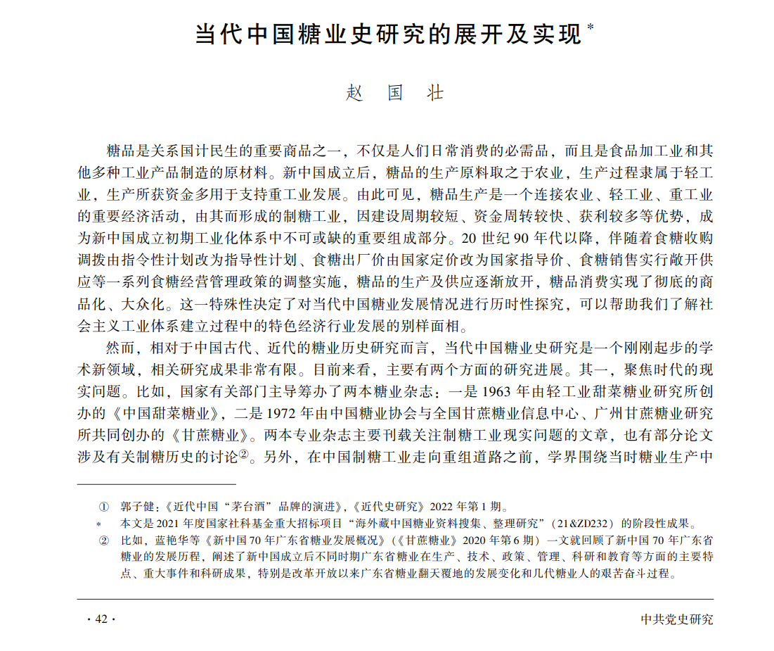 喜讯|公司赵国壮教授撰写的论文《当代中国糖业史研究的展开及实现》在《中共党史研究》2024年第1期公开发表。