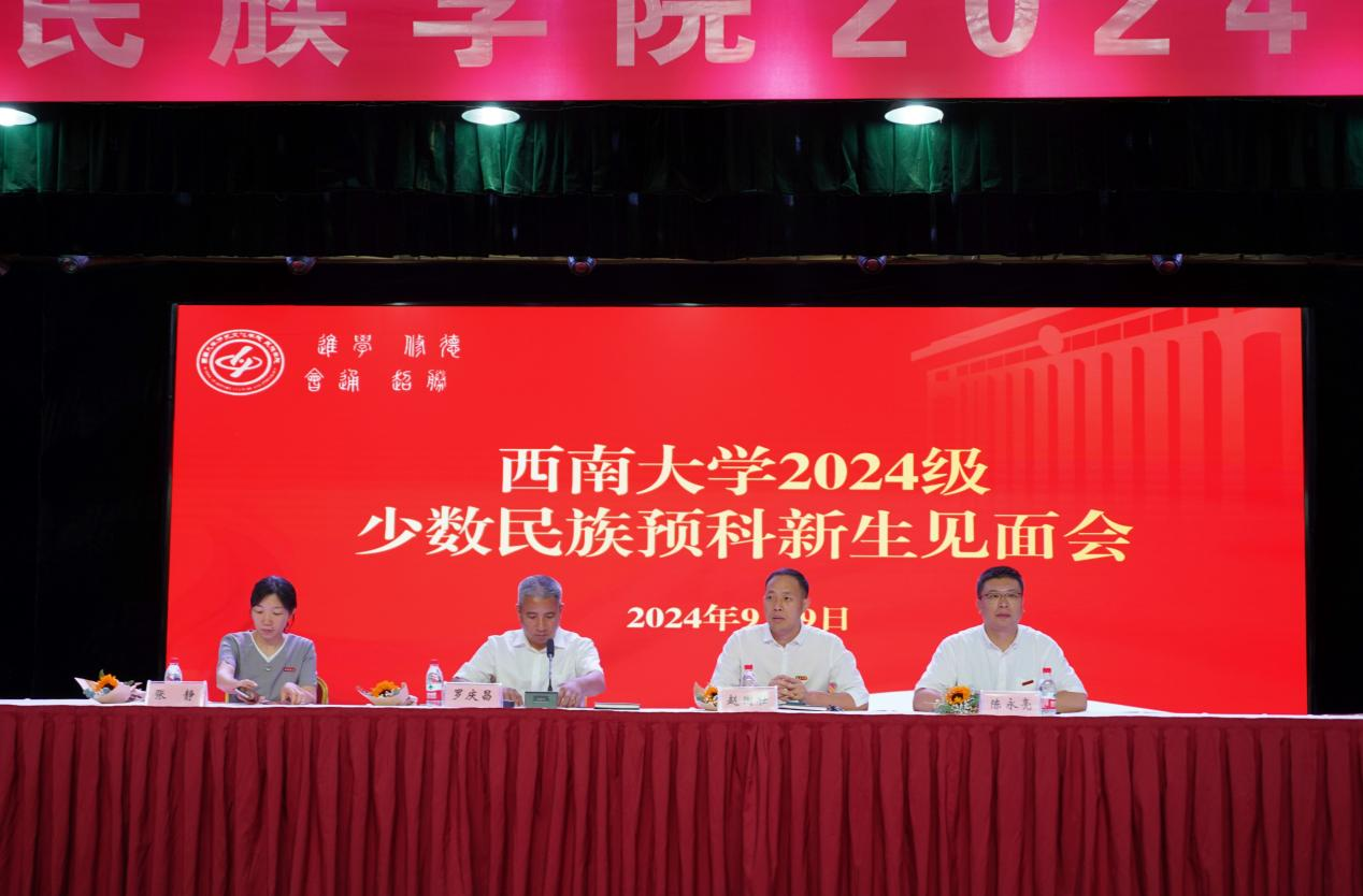 九月的北碚因新生而热烈,青春的画卷随信步而展开。2024年9月9日上午11时,2024级少数民族预科新生见面会在圆顶三楼报告厅举行。本次见面会由公司党委书记罗庆昌主持,公司党政班子成员和院教职工出席。2024级全体预科新生参会,聆听师长教诲,汲取朋辈力量,启航人生新篇章。在庄严的国歌声,开学典礼拉开序幕。