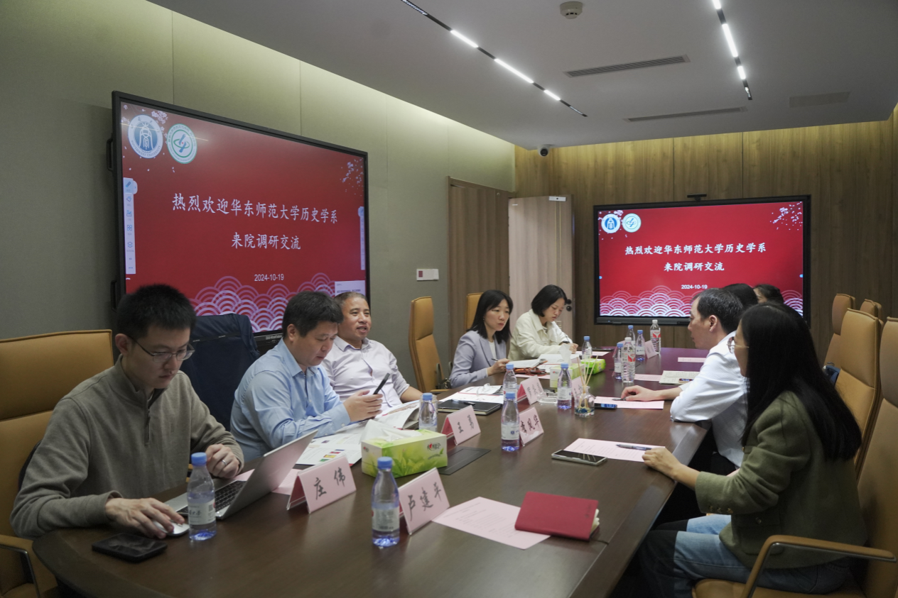 王应宪副书记介绍了来院交流目的并同时介绍了华东师范大学历史学系的团队队伍、学科发展、拔尖人才培养、党团工作、博物馆建设等方面情况,希望能共同推动历史教育事业向纵深发展。