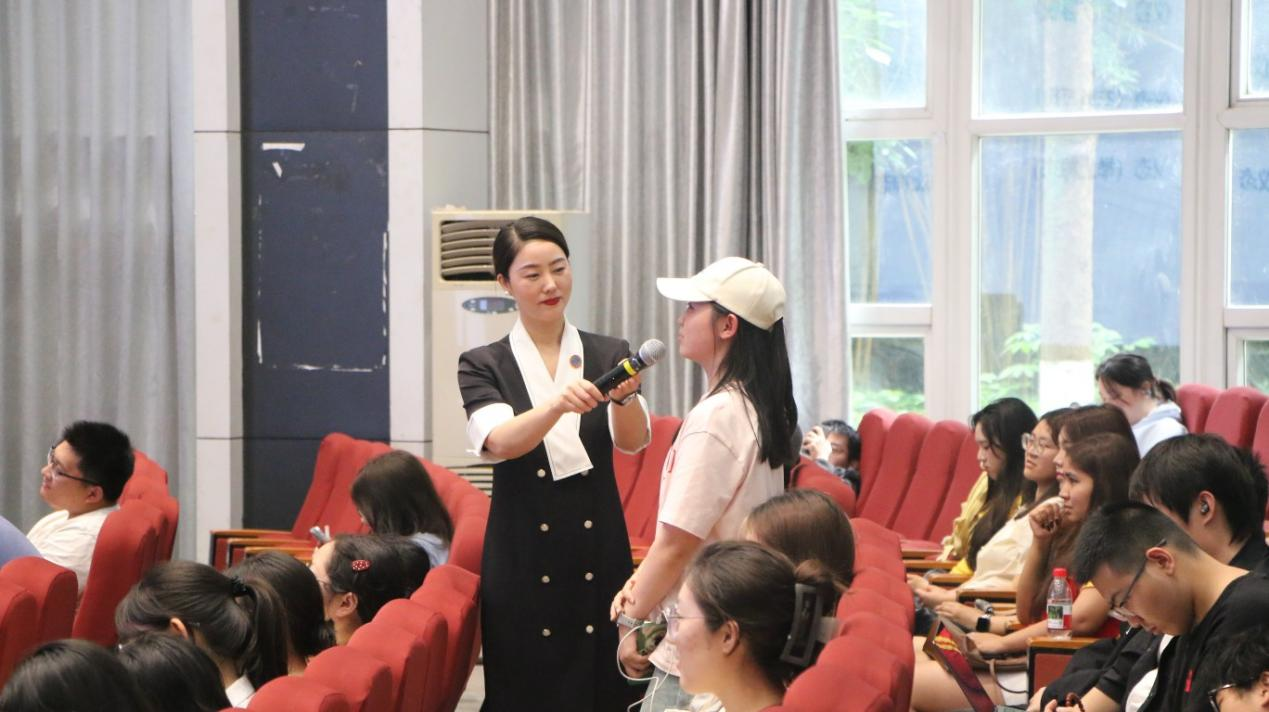 田贵芳老师从礼仪的概念出发,指出礼仪的本质在于待人之道,体现的是尊重。强调了学习礼仪的意义,有助于内强素质、外塑形象、增进交往。无论是日常交流、求职面试还是职场工作,恰当的礼仪都能够帮助我们建立积极的人际关系,提高个人魅力,在激烈的竞争中占据优势。她结合实际生活场景与职场规范,通过互动教学、场景化教学、现场演示等方式,重点讲解了形象礼仪、接待礼仪、沟通礼仪等公关礼仪、职场礼仪的基本规范和要求。田老师优雅的举止、得体的语言,现场的示范,生动展示了仪容、仪表、仪态等着装礼仪,正确的坐姿、站姿、走姿,握手、递接等行为举止和礼貌用语、沟通技巧等礼仪规范。同学们积极参与互动,现场气氛轻松愉快,大家一致认为收获颇丰。