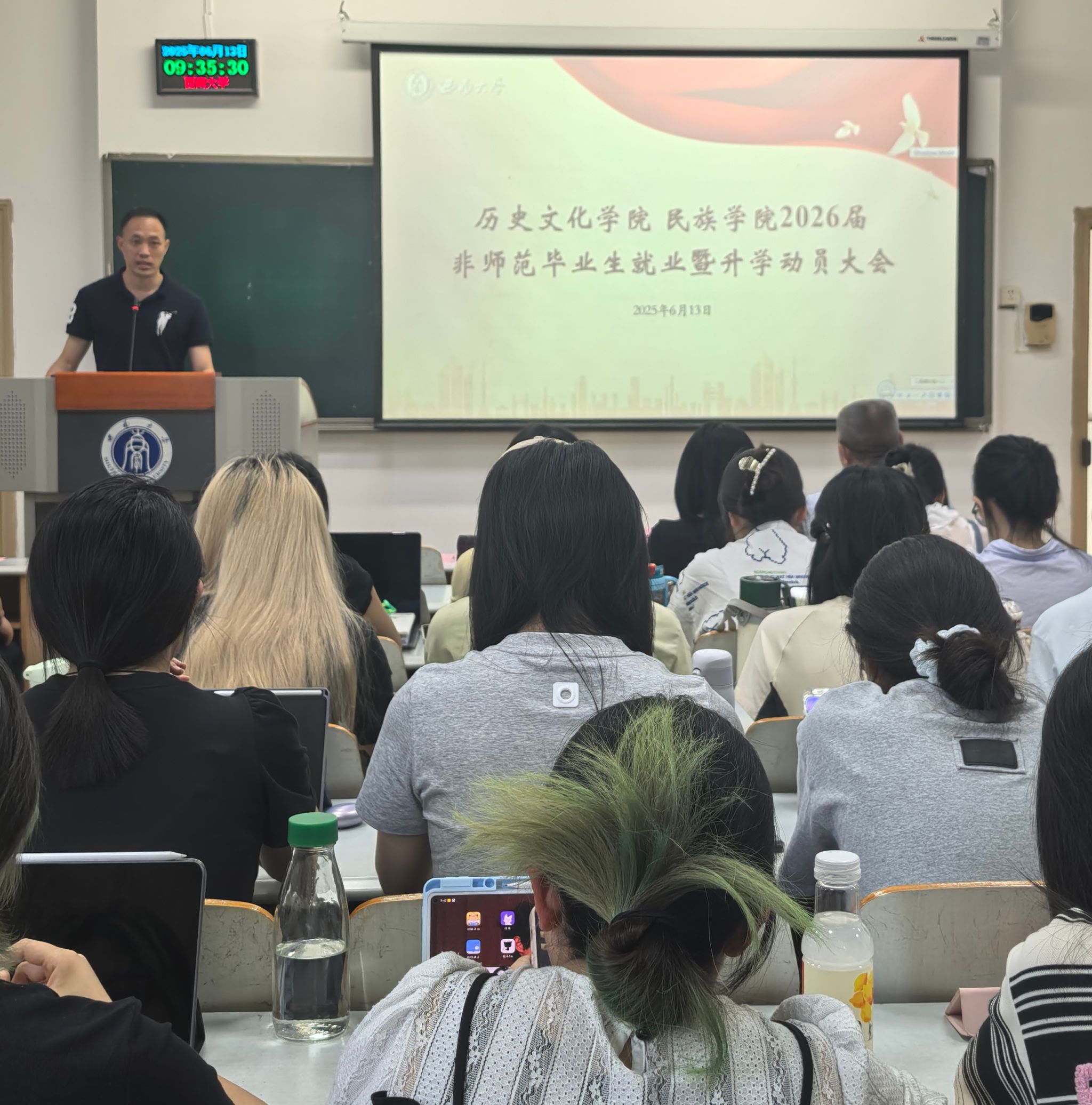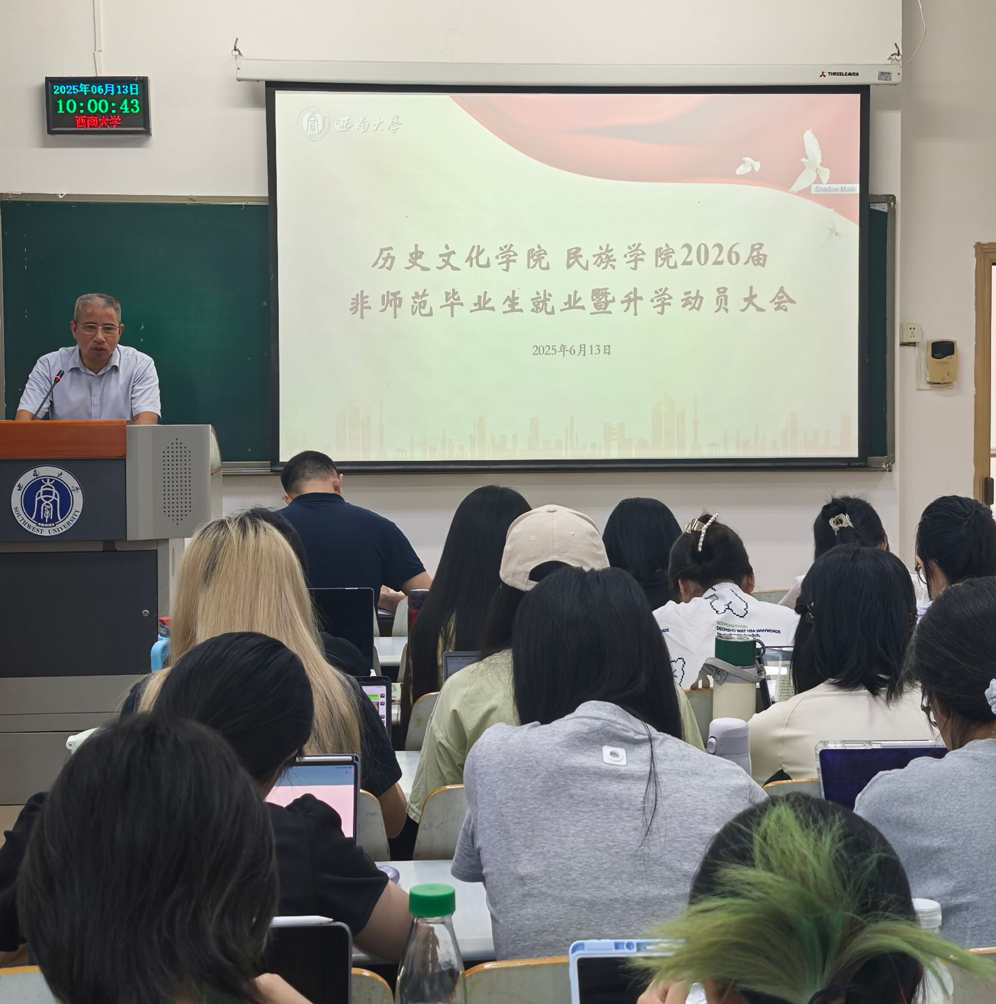 为扎实推进公司2026届毕业生就业工作,引导毕业生明确职业目标,提升就业和考研竞争力,6月13日上午,BB贝博艾弗森在10教505教室召开2026届非师范毕业生就业暨升学动员大会。公司党委书记罗庆昌、经理赵国壮、党委副书记张静、副经理陈永亮、2022级班主任代表宋亮、2022级辅导员刘玉婷和2026届历史学、民族学专业全体毕业生参加大会。会议由张静副书记主持,分为就业升学动员和升学指导两个阶段。