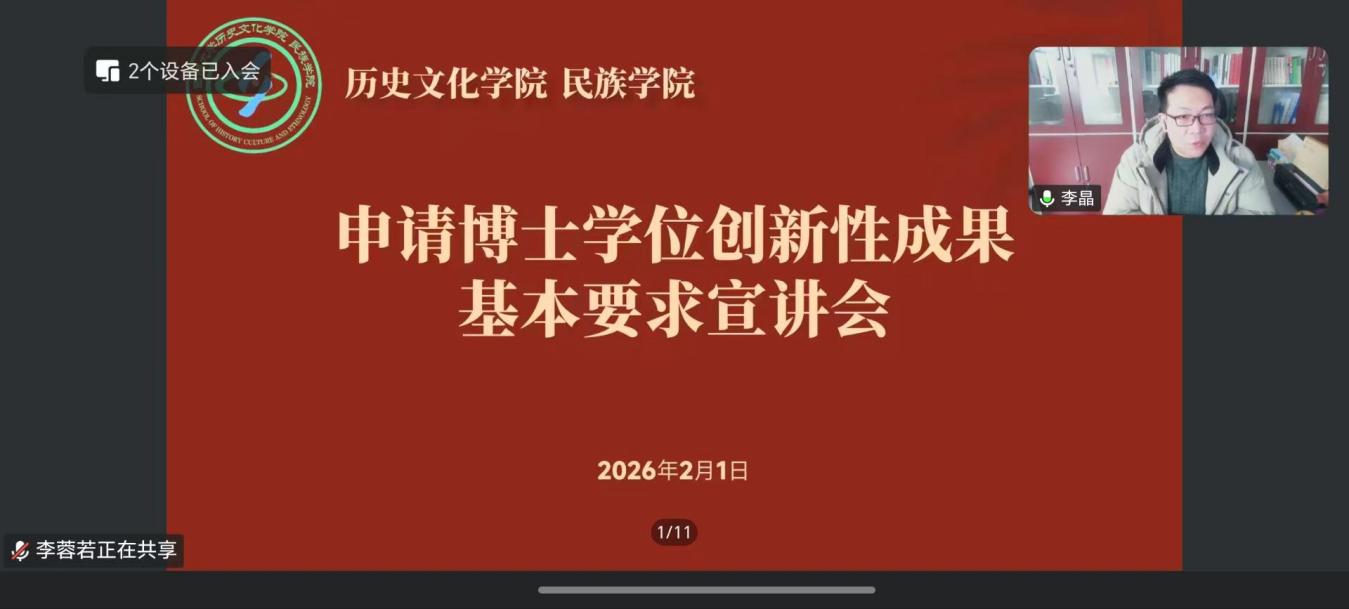 2026年2月1日下午,公司举办“申请博士学位创新性成果基本要求”宣讲会。公司副经理李晶教授担任主讲,研究生辅导员李蓉若主持,研究生教学秘书张哲鉴及全体在读博士生参会。