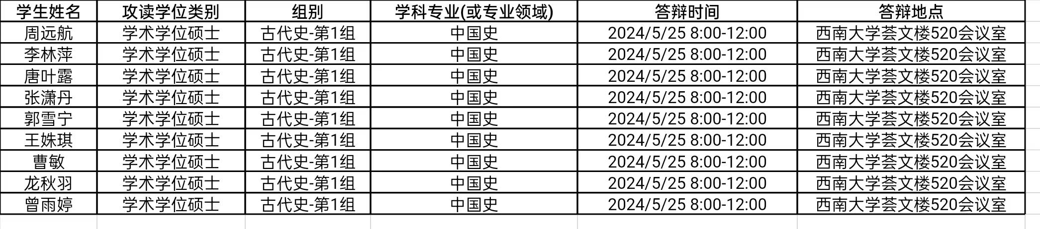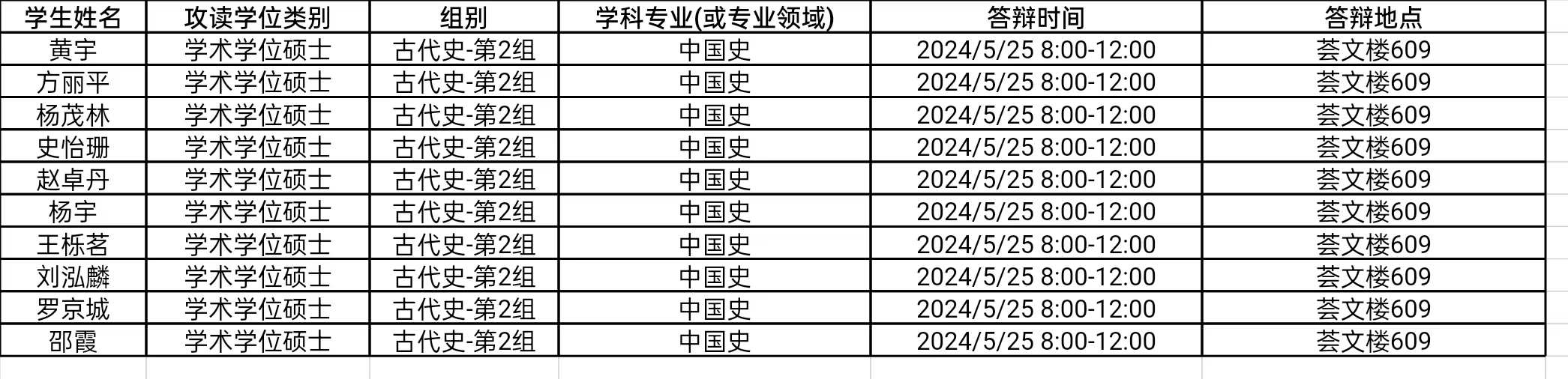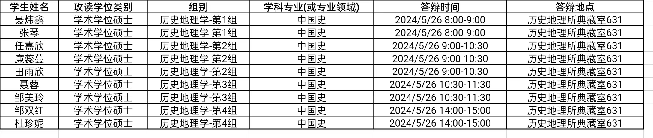 2024年春季学期学位论文答辩安排公告(历史地理学)