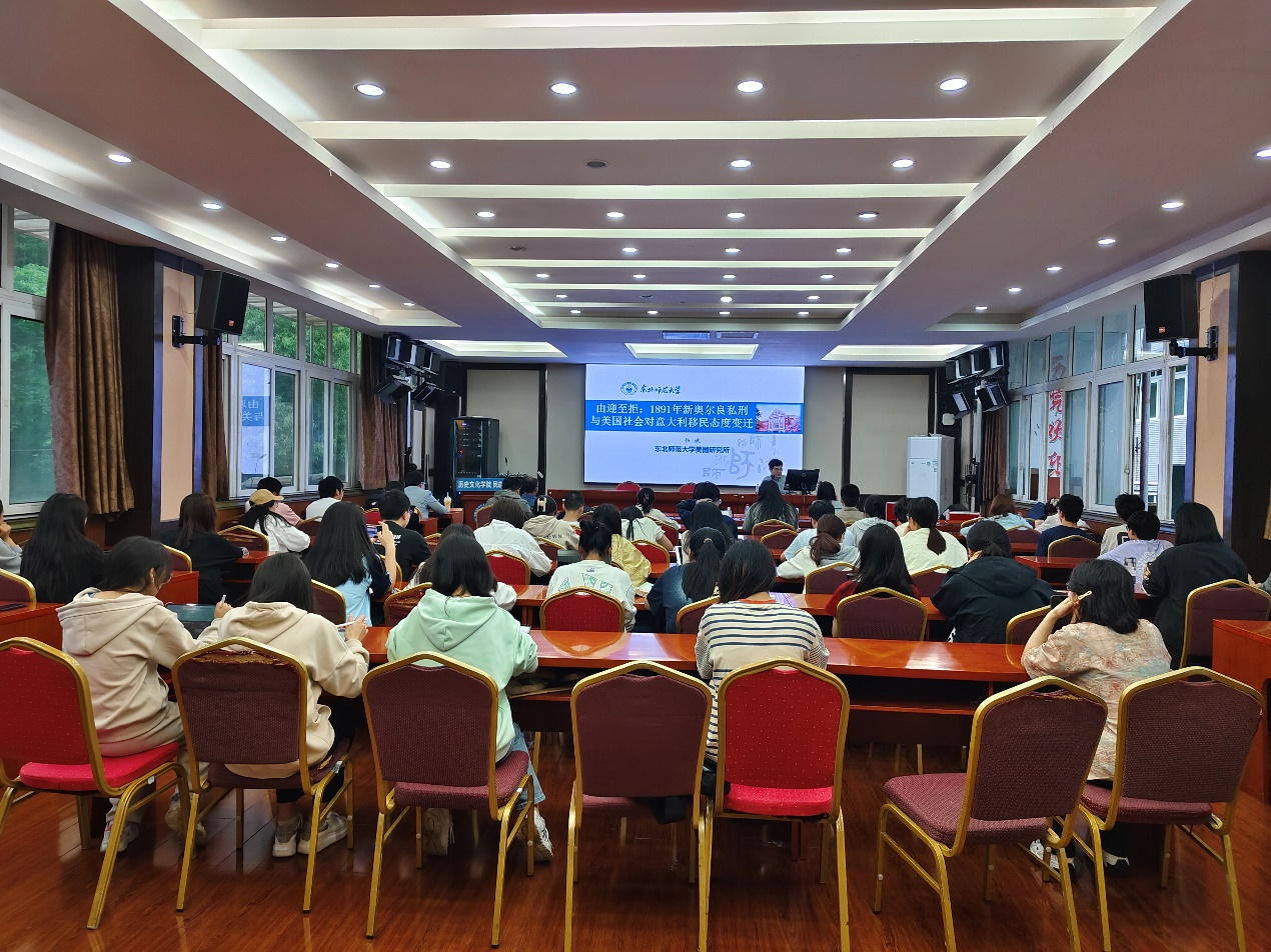 缙云有玉犹在璞,待遇良工细细琢。为培养同学们的学术能力,开拓知识视野,2024年4月21日,东北师范大学美国研究所教授、博士生导师、中国美国史研究会理事伍斌老师受邀莅临BB贝博艾弗森,为2023级历史学拔尖创新实验班的同学们开展了一场名为《由迎至拒:1891年新奥尔良私刑与美国社会对意大利移民态度变迁》的学术讲座。本次讲座由公司副教授高科主持,公司王勇副经理、李晶副经理、部分青年教师和研究生,以及历史学、民族学拔尖创新实验班同学参加。