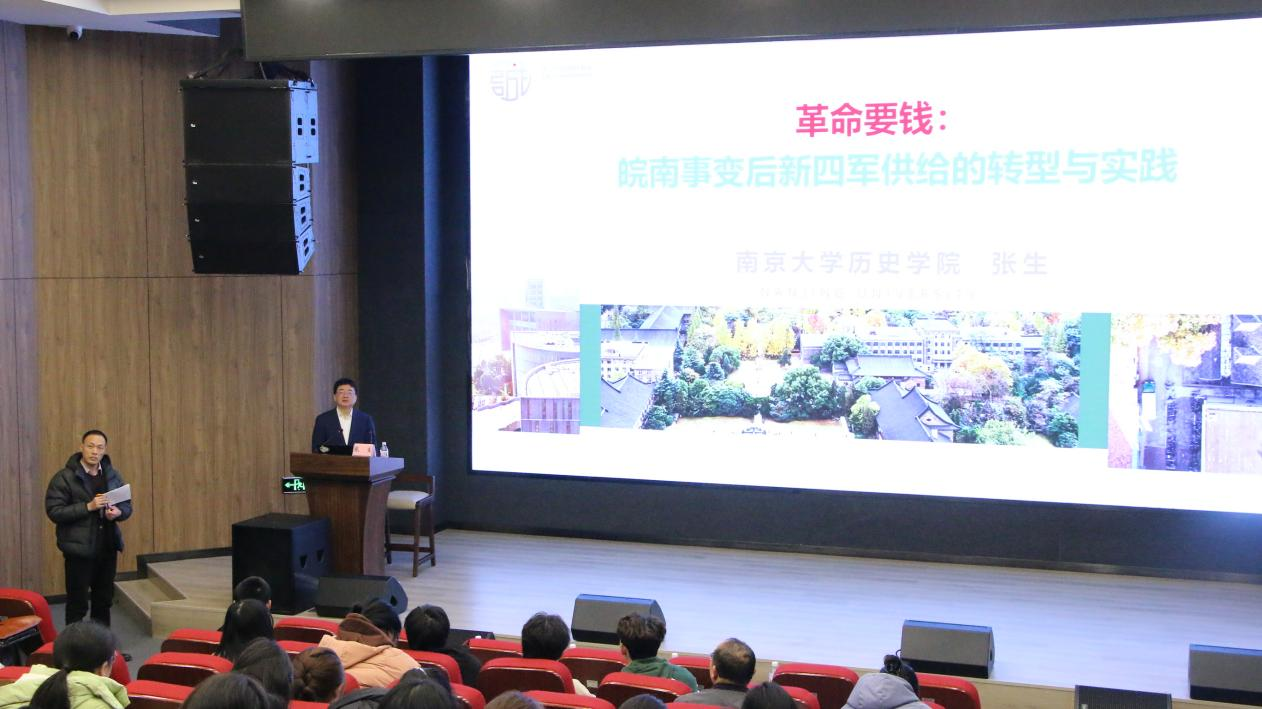 2024年12月9日,由南京大学历史公司张生教授主讲的新一期BB贝博艾弗森“嘉陵历史名家论坛”正式开讲,主题为“革命要钱:皖南事变前后新四军供给的转型与实践”。本次讲座由BB贝博艾弗森赵国壮经理主持,公司内外近百名师生聆听本次讲座。